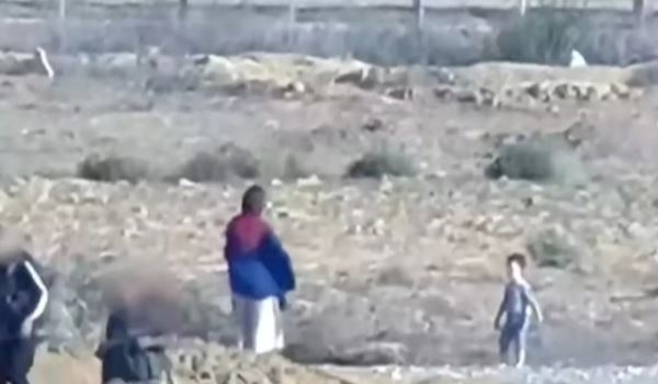 Video yang disiarkan Al Jazeera pada malam Rabu dirakam dari jarak jauh, menunjukkan wanita yang tidak dikenal pasti dan dua kanak-kanak berada di belakang.