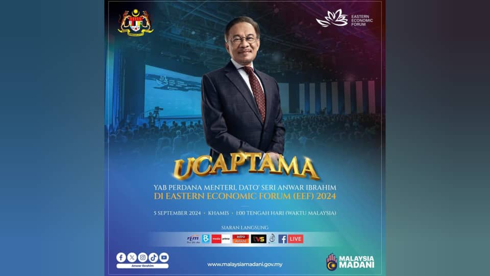 KUALA LUMPUR, 5 September-Perdana Menteri, Datuk Seri Anwar Ibrahim akan menyampaikan ucaptama di sesi Plenari Forum Ekonomi Timur Kesembilan (EEF 2024) di Vladivostok, Rusia, hari ini.