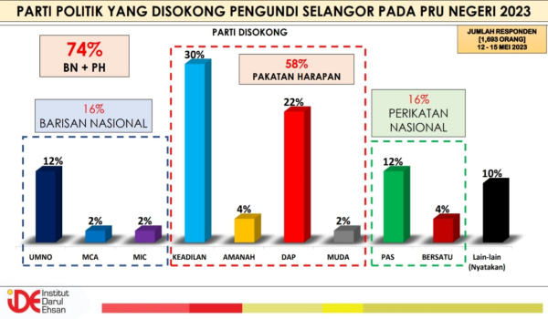 Dapatan itu berdasarkan tinjauan Institut Darul Ehsan (IDE), yang dilaksanakan pada 12 hingga 15 Mei lalu.