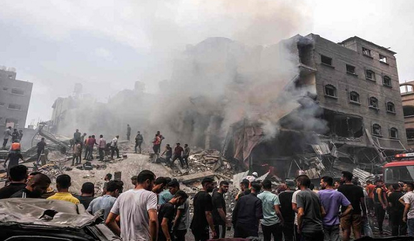 (Penduduk Palestin mencari mangsa yang terselamat selepas serangan udara Israel ke atas bangunan