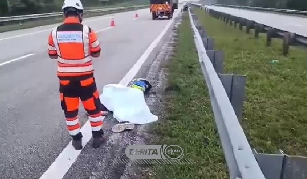 Sejurus tiba di satu laluan lurus, motosikal yang ditunggang mangsa di lorong sebelah kanan lebuh raya dipercayai hilang kawalan secara tiba-tiba lalu terbabas dan terseret sejauh kira-kira 50 meter.