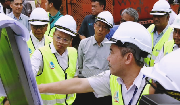 (Nik Nazmi semasa lawatan kerja ke Tapak Projek Pakej D44 Pembinaan Rangkaian Paip Pembangunan)