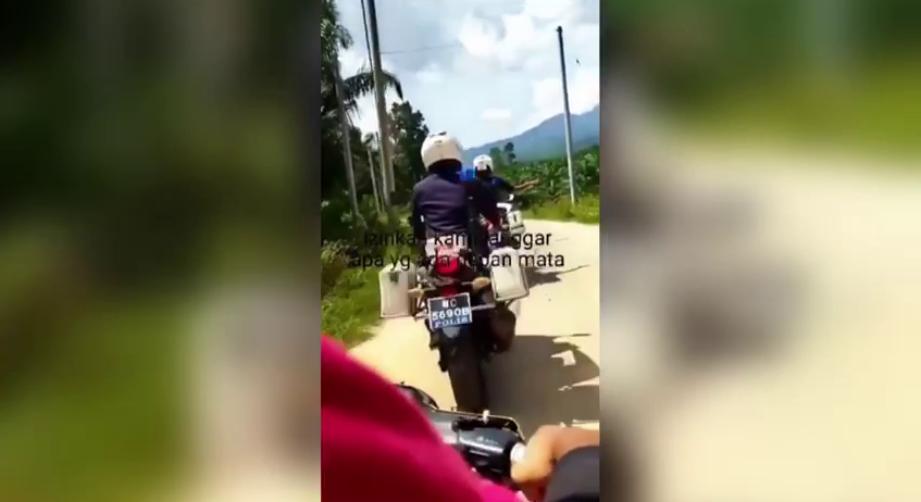 Ketika menghala ke tempat kejadian, sebuah motosikal ditunggang oleh penduduk kampung telah mengekori rapat dan secara tidak sengaja melanggar bahagian belakang motosikal polis.