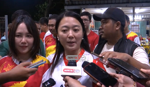 Hannah bercakap kepada media ketika mengiringi Sock Tao berkempen pada program singgah dan salam perlawanan bola keranjang di Hulu Yam Lama, di sini.