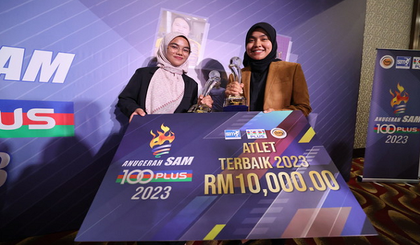 KUALA LUMPUR, 6 Jun – Gandingan boling padang negara, Nur Ain Nabilah Tarmizi-Aleena Ahmad Nawawi mencipta sejarah apabila muncul wakil boling padang memenangi Anugerah Atlet Terbaik pada Anugerah Persatuan Penulis-Penulis Sukan Malaysia (SAM)-100PLUS 2023 di sini, malam ini.