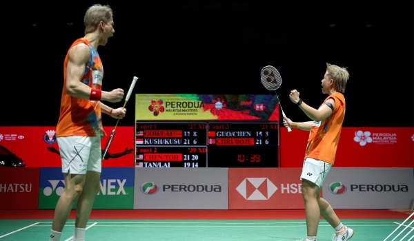 Pada pentas akhir esok pasangan negara akan berhadapan dengan pasangan Indonesia, Rinov Rivaldy dan Pitha Haningtyas Mentari yang terlebih dahulu berjaya membenam pasangan Denmark, Mathias Christiansen dan Alexandra 26-24, 14-21 dan 21-18.
