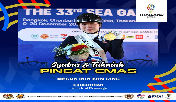 BANGKOK, 16 Disember – Kontinjen Malaysia terus menambah koleksi pingat emas Sukan SEA 2025 hari ini menerusi atlet ekuestrian Megan Min Ern Ding yang menungguli acara dressage individu.