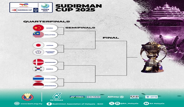KUALA LUMPUR, 2 Mei – Malaysia bakal menguji kemampuan sebenar apabila diundi bertemu China dalam perlawanan suku akhir Piala Sudirman 2025, di Xiamen hari ini.