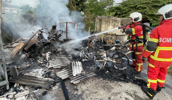 11 buah motosikal dalam garaj musnah terbakar
