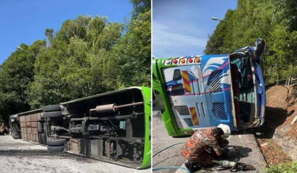 Dua lelaki China maut, bas persiaran terbalik di Genting Highlands