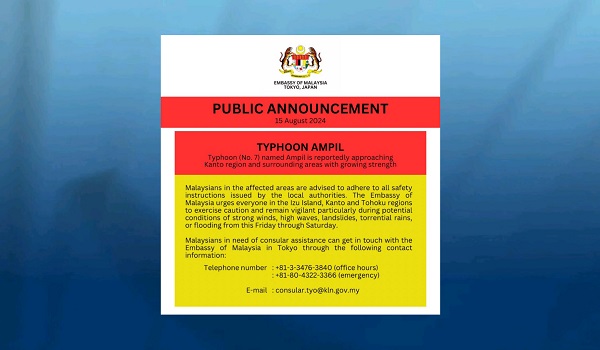 Taufan Ampil: Rakyat Malaysia di Kanto dinasihat waspada