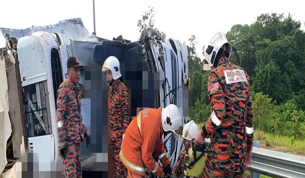 Pemandu bas maut, 10 penumpang cedera langgar belakang treler