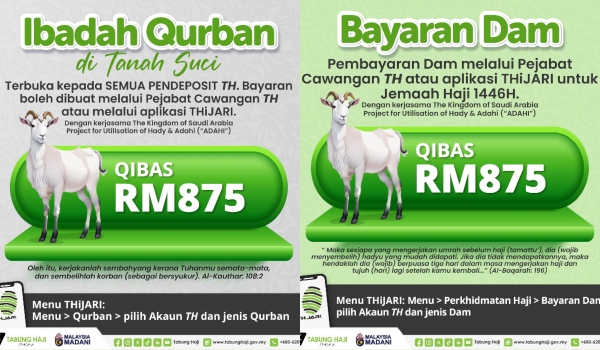 Bayaran dam, korban Tanah Suci ditetapkan RM875 bagi seekor kibas