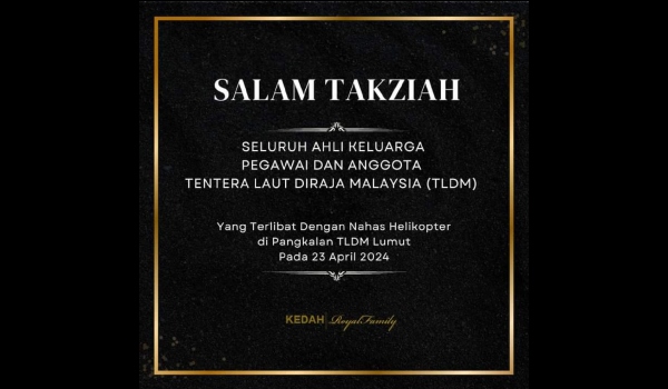 Keluarga Diraja Kedah zahir ucapan takziah kepada keluarga mangsa nahas helikopter